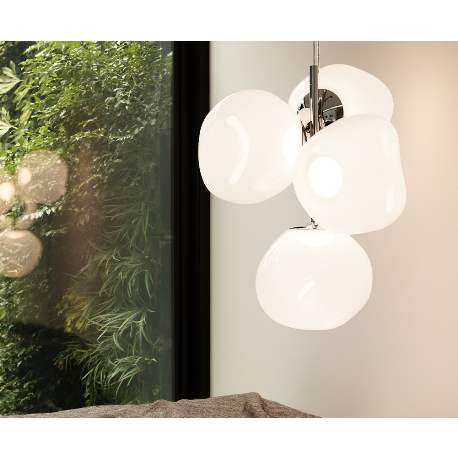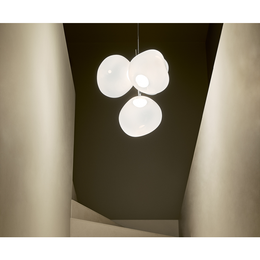 Obsessed with the idea of creating an imperfect, organic and naturalistic lighting object, Melt was created in collaboration with FRONT – a Swedish design collective. Melt is evocative of molten glass, the interior of a melting glacier, or images of deep space.