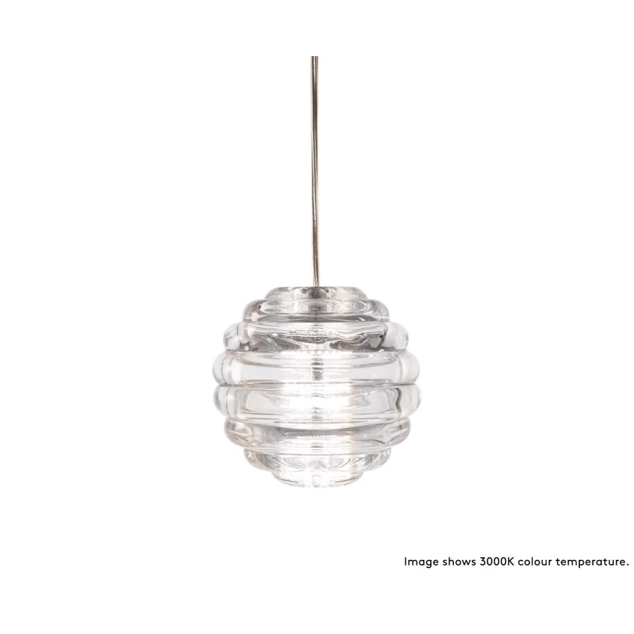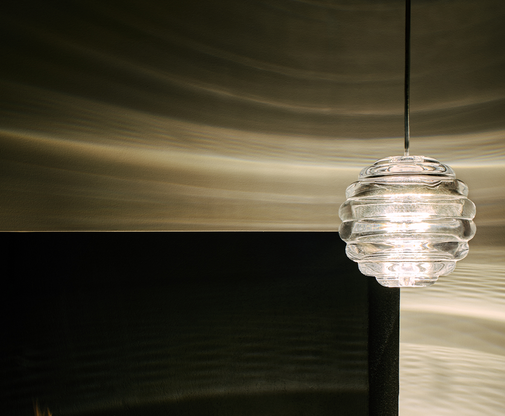 The thickest industrially Pressed glass artefacts designed and engineered to catch and refract light, and to last for ever. Press is a series of heavyweight grooved lighting, vases, bowls and candleholders made of fat, chunky coils of pure and clear transparent glass.