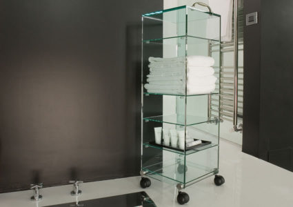 Handy in any environment. Shelves can be in transparent or frosted glass.