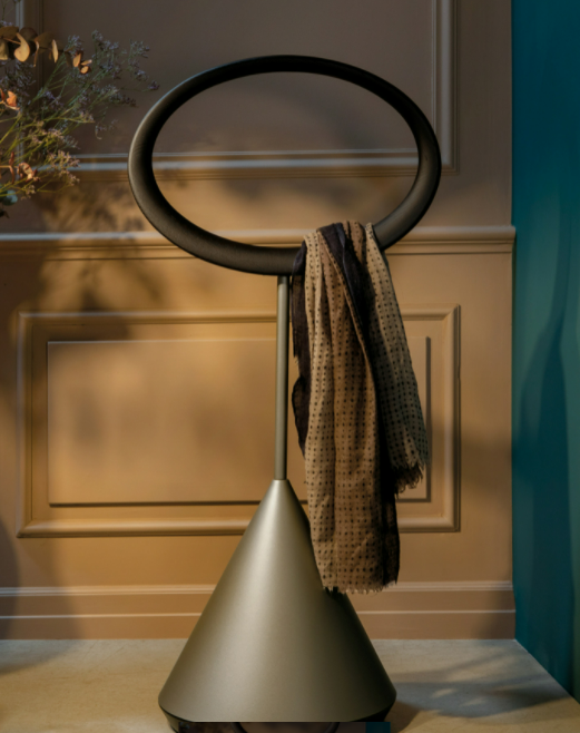 Questo servomuto che prende ispirazione dall’artista Mirò, richiama atmosfere surreali. Funzionale e al contempo prezioso, è realizzato con finiture in legno massello e acciaio verniciato.