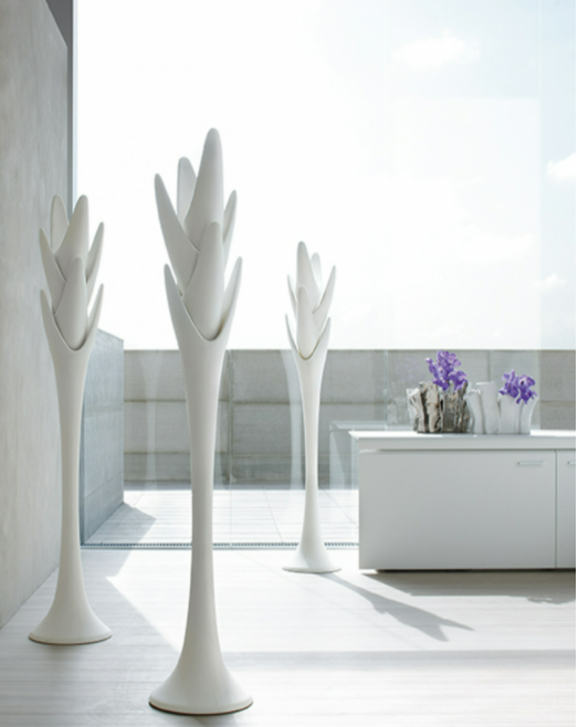Spiga è un perfetto ed estremo esperimento di design: la naturalezza della spiga di grano incontra la raffinata lavorazione di un materiale plastico. Linee morbide si creano per raggiungere una linea delicata e sviluppata verso l'alto, dove si snodano i petali appendiabiti.