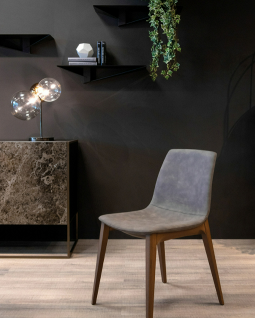 Aralia si caratterizza per il forte impatto dato dalla combinazione di linee morbide ed eleganti - la seduta in sé, rivestita nelle migliori pelli, ecopelli, pelli nabuk o fiore - e la forte naturalezza del legno delle gambe. Un frassino tinto noce Canaletto, rovere scuro o rovere naturale, che eleva e valorizza l’ampia gamma di colori a disposizione per i rivestimenti.