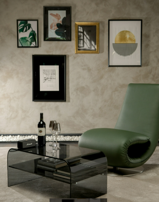 Tavolino dalla linea sinuosa e minimal, con ripiano in finitura extrachiaro, bronzo o fumè.