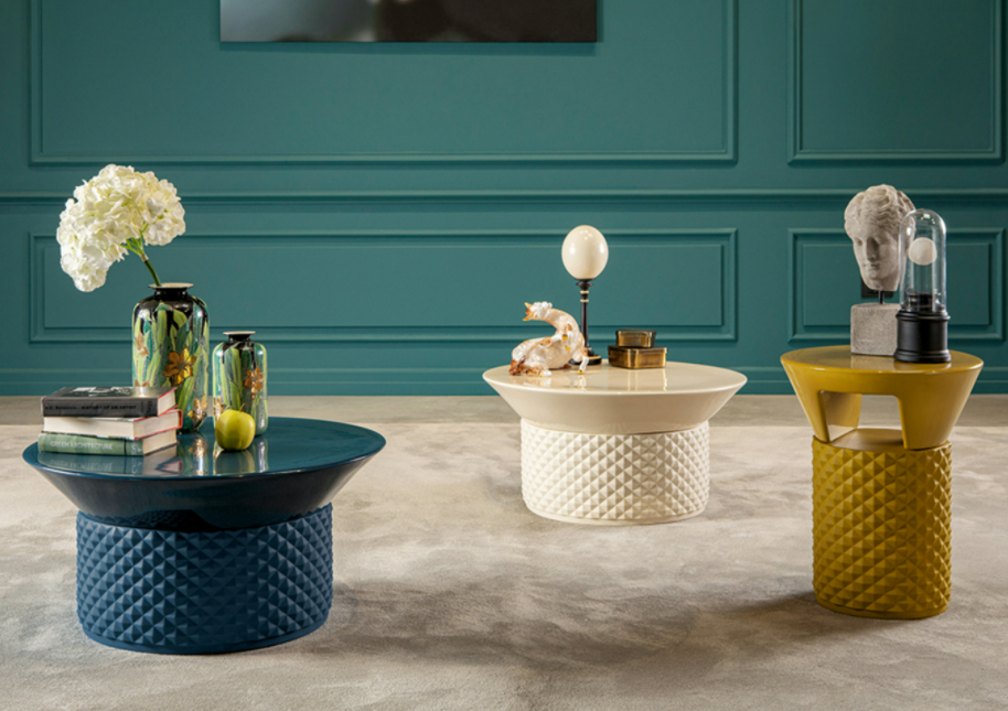 Una combinazione unica di texture, colori e design: nasce Palmbeach, una nuova versatile famiglia di tavolini in ceramica matt abbinata a smalti lucidi o finiture pregiate in oro lucido. Due forme inconfondibili dalla forte personalità per tavolino e servetto, disponibili anche con diffusore di luce e in varie misure con base finitura matt e top lucido.