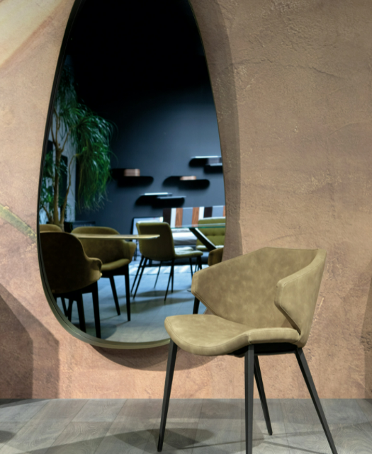 La sedia Glam si distingue per le sue linee definite e per l’estetica raffinata.