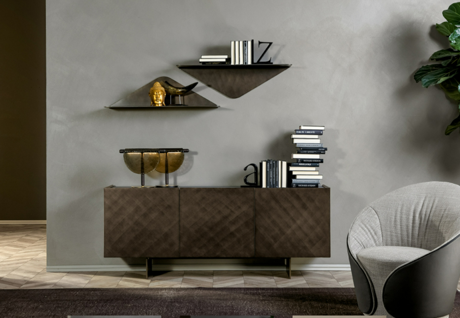 Una credenza con lavorazione spazzolata disponibile nella versione bronzata, rame o titanio. Una texture semplice ma di effetto per abbinare le madie alle basi dei nostri tavoli.