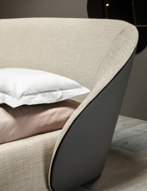 Mama è il letto leader per quanto riguarda il concetto di morbidezza e calore. Si distingue per il particolare disegno sinuoso e avvolgente della testata, che ispira un comfort generoso e una sensazione di accogliente morbidezza.