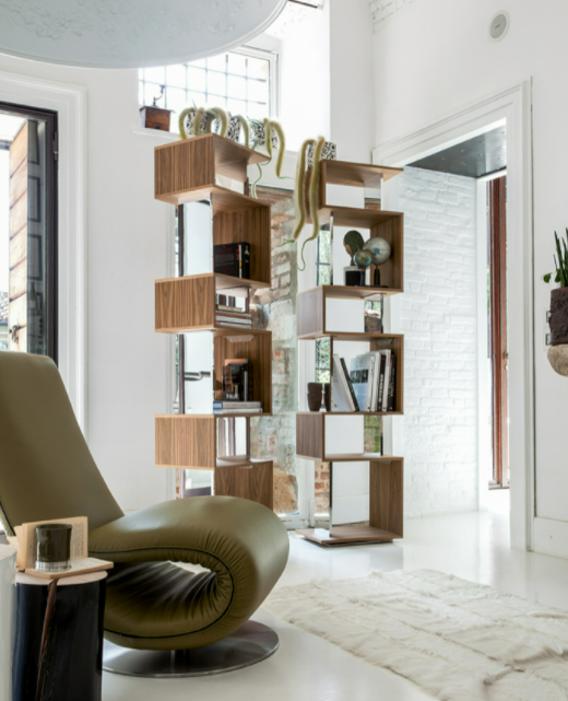 Osuna è una libreria girevole che si sviluppa in altezza, ricordando un futuristico edificio dai toni germanici. Il vetro ed il legno si combinano a formare un oggetto unico ed inimitabile bellezza.