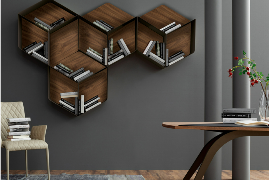 Un tutt’uno di isole, di cubi in legno e metallo che si avvicinano e si uniscono, formando una libreria-continente in grado di ospitare libri ed oggetti al meglio. Pangea si sviluppa modulare, riempiendo un’intera parete, o solamente completandola, a seconda del gusto e dell’equilibrio di ciascuno.