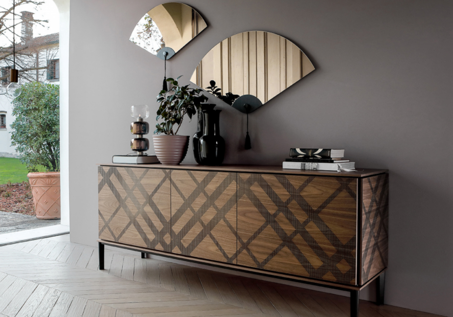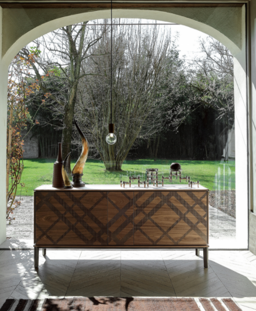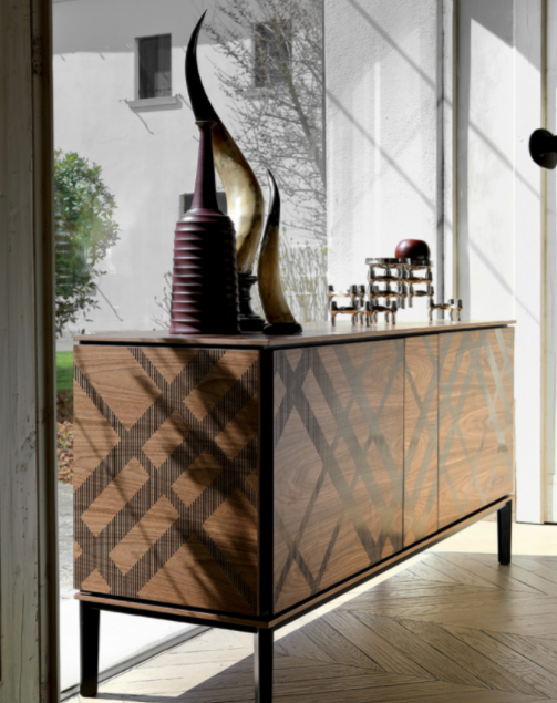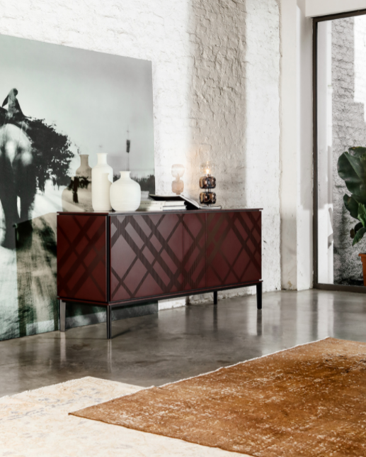 Tartan è una madia studiata per avere una struttura semplice e raffinata: il metallo verniciato sostiene con agilità il legno di scocca, top e fianchi. Una serigrafia ispirata ai tradizionali abiti scozzesi decora questa madia, che appare come un raffinato filo di Scozia che decora ogni living.