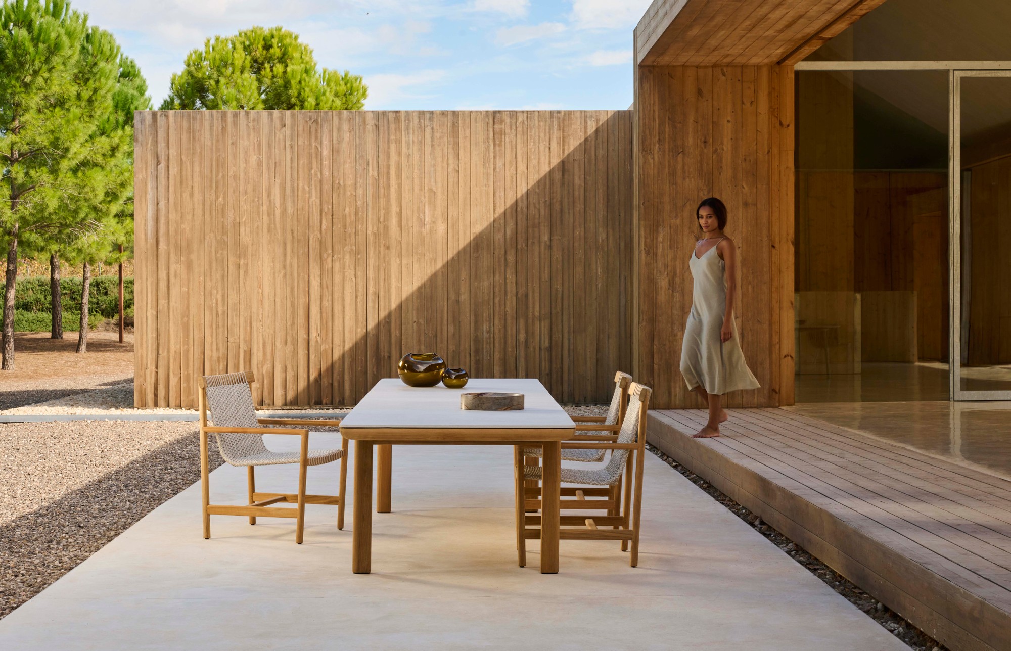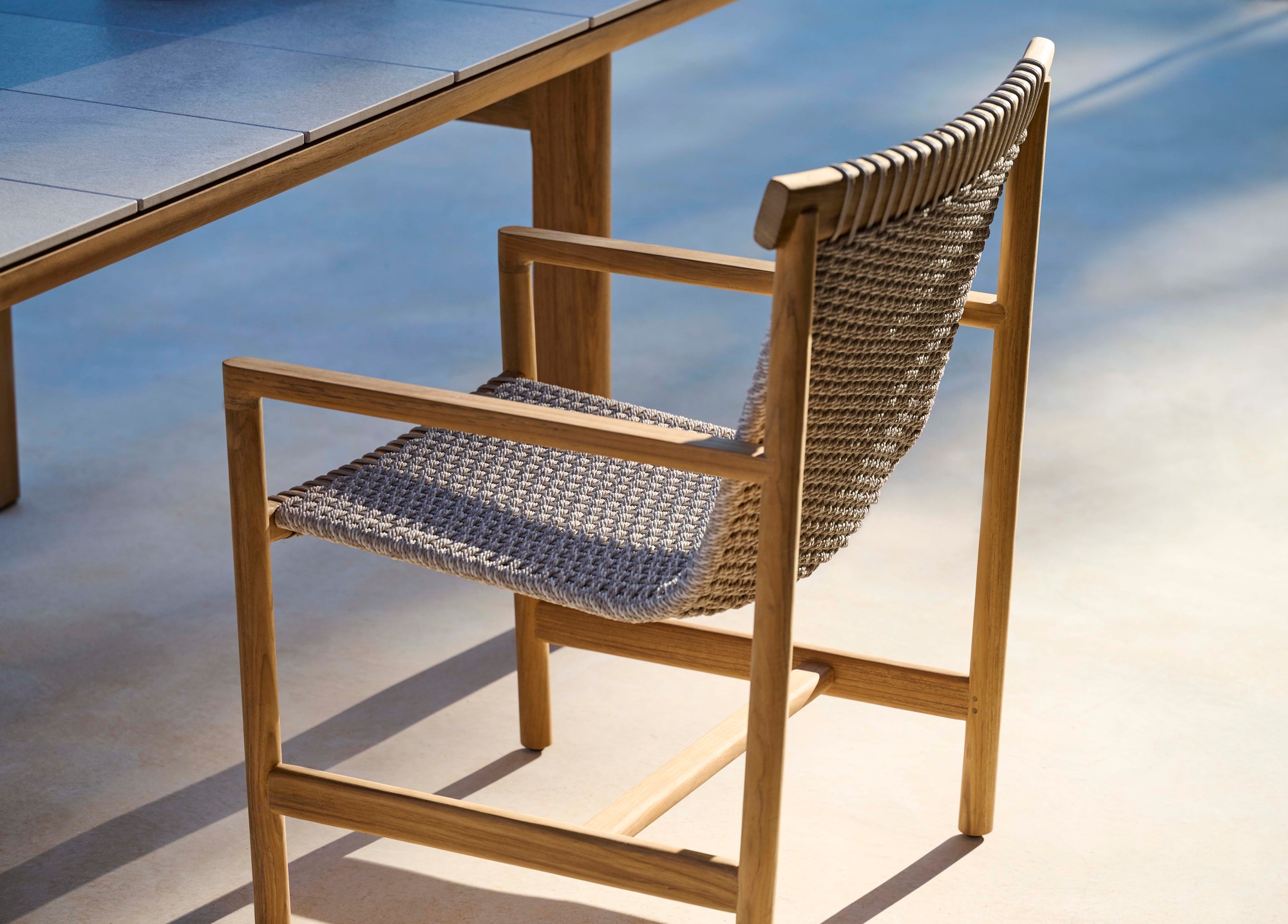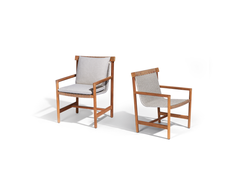 The refined Amanu collection brings interior quality outside, combining comfort and sustainability. The chairs feature woven, hemp-based Canax? sling seats that seem to float from a slimline-teak frame, sourced from sustainably managed Indonesian plantations. The slightly tapered legs provide lightness and grace, while the smooth, half-rounded armrests and the elegantly finished cushions make the chairs extremely comfortable.