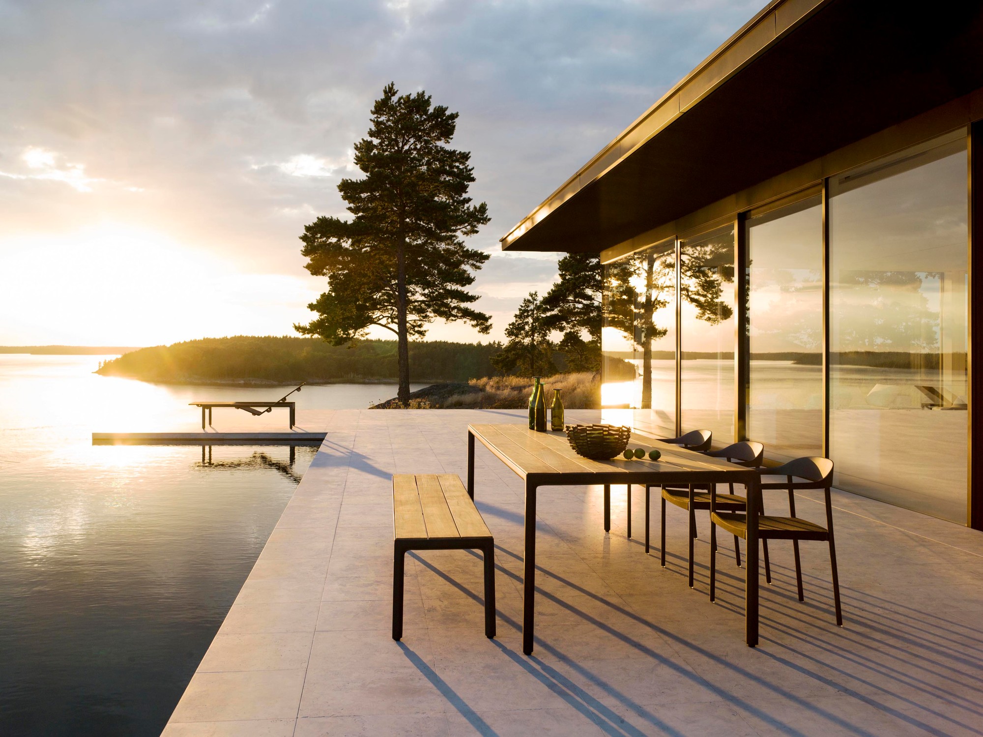The Illum bench is kept pure and simple with beautifully curved profiles complementing the slim legs. The powdercoated aluminium frame is easy to maintain. As for the seat in teak, Tribù uses only the very best teak to be found in Indonesia: A-class wood grown in sustainably managed plantations.