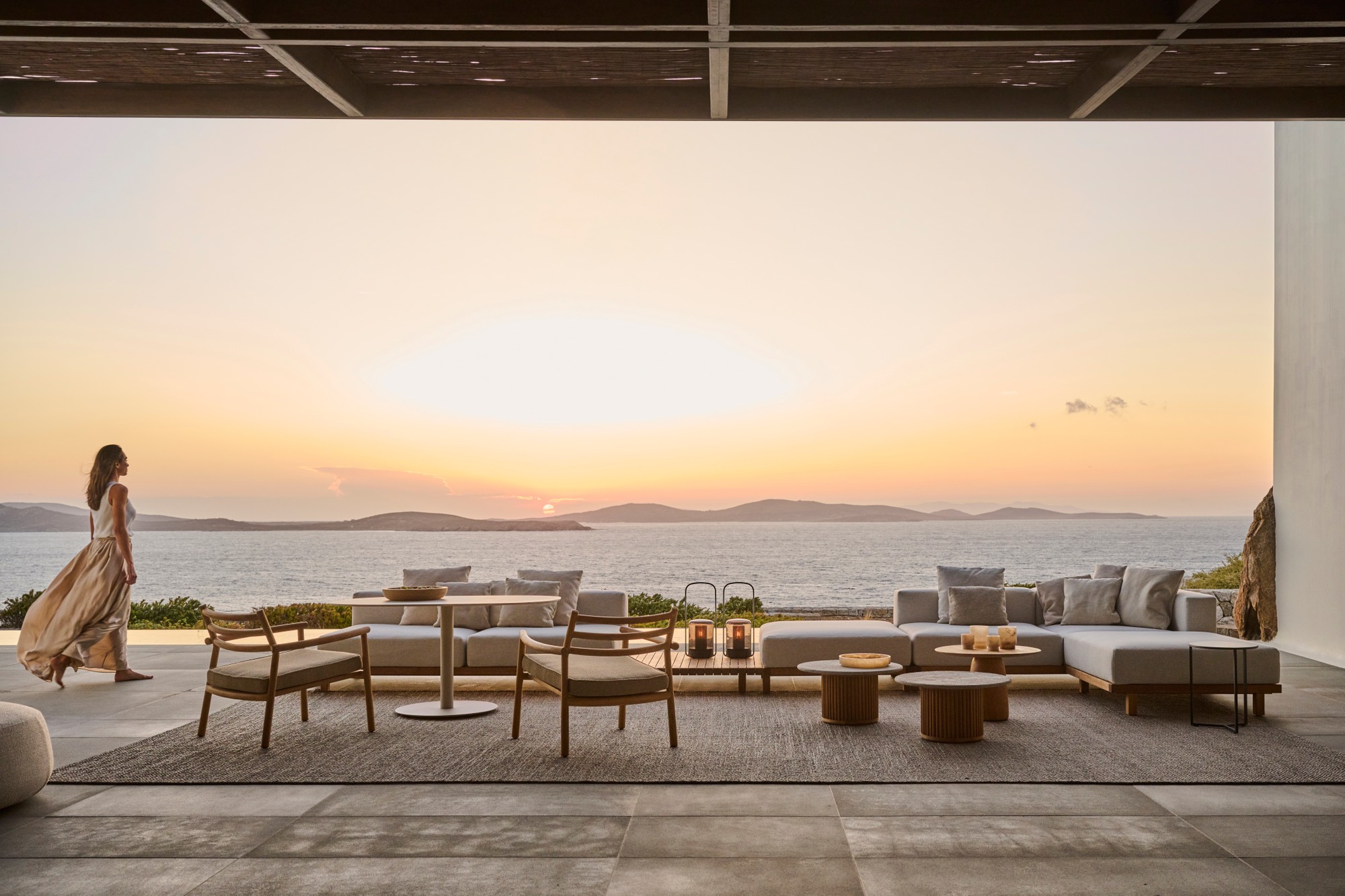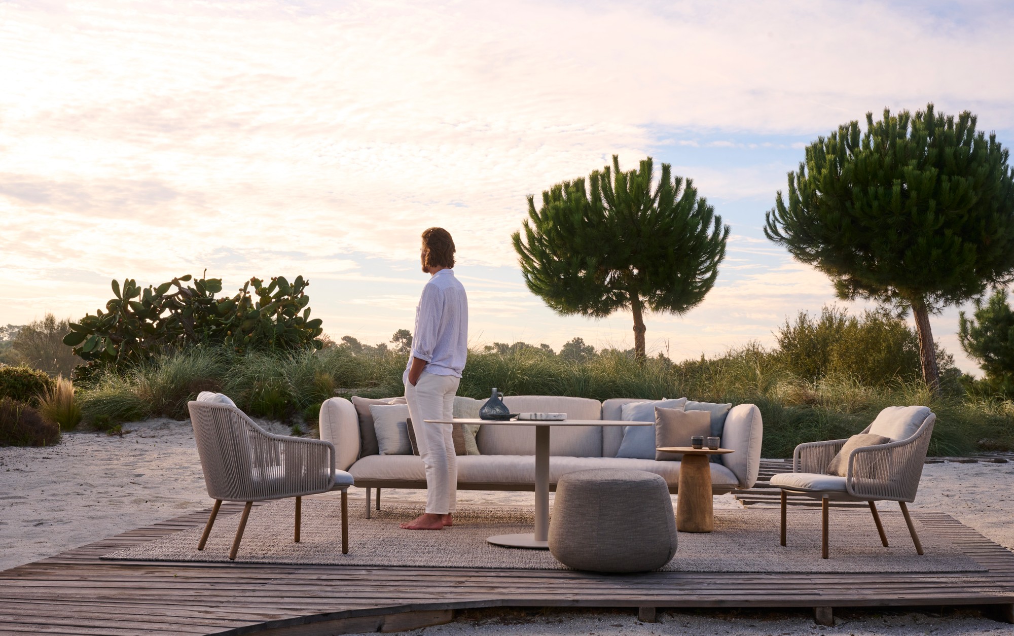 The elegant T-Table with its refined proportions and elegant materials inspires daydreams of a glamorous ‘la dolce vita' existence. The glazed top, made of 400-year old lava stone from the Vesuvius, mirrors the sky and is reminiscent of rippling water. The coloured glazing is added by hand. Baking at a high temperature creates a subtle craquelure finish, giving each table a unique look and making the stone heat, water, UV and stain-resistant, not to mention easy to maintain. This pure and timeless table is also available as a dining' table and coffee table, making al fresco dining even more comfortable.