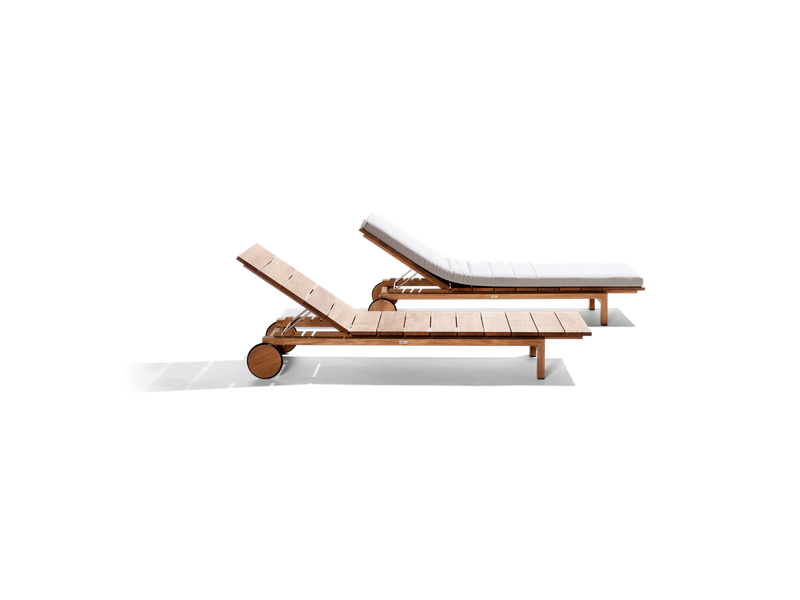 The combination of the broad slats and the pure but powerful design, reinvents teak in a modern, robust way. The Kos lounger is adjustable into 5 positions and guarantees optimal comfort when used with the extra voluminous cushion. Tribù uses only the very best Javanese plantation wood for its teak outdoor furniture. Its quality is locally controlled by subsidiary Tribù Asia.