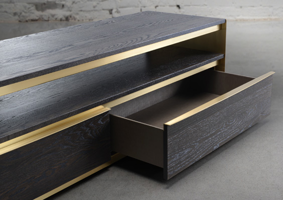 Inside of drawers is available in all Trica fabrics, vinyls and bonded leathers. It is not available in leather.