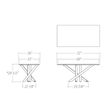 Starphire tempered glass top with a at polished edge (1/2” thick).