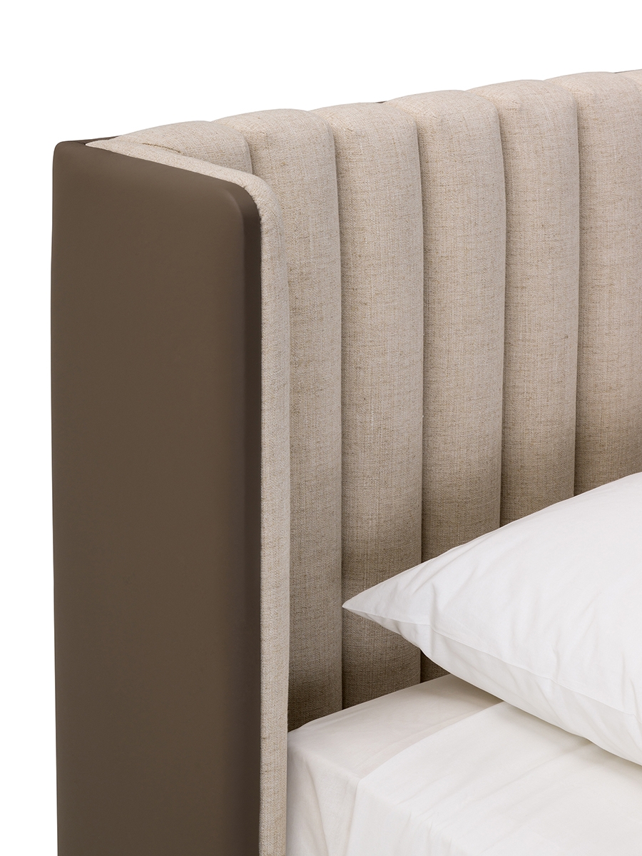 The Domus bed has contemporary proportions and light shapes. The design of the headboard, curved and enveloping, is characterized by original vertical seams that give it a unique appearance. The upholstery can be in leather, fabric or with both materials in combination. The Domus bed is available in different finishes as per sample card.