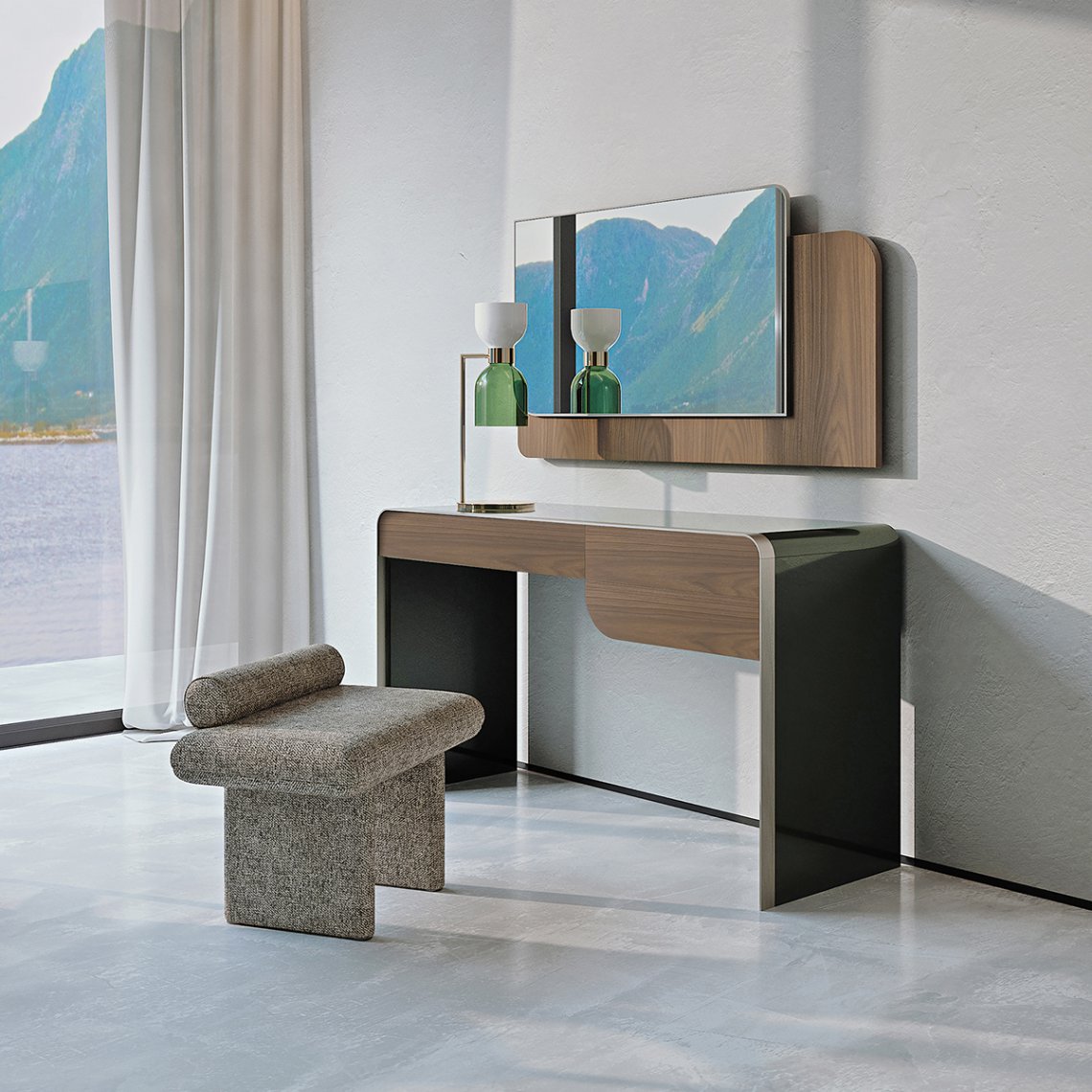 The Soul collection fulfills the desire of each individual to find themselves daily in a personal space dedicated to taking care of themselves. The Soul mirror is made of wood available in a glossy lacquered and walnut finish.