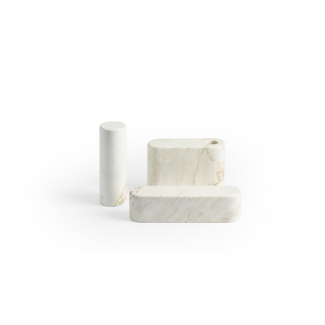 The objects of the Roma collection, with its soft and rounded lines, show its innovative DNA in the choice and use of precious materials, are made entirely of Verde Alpi or Calacatta marble, with its round and oval shapes and its curves. tactile is ready to support the authenticity of the Turri brand.