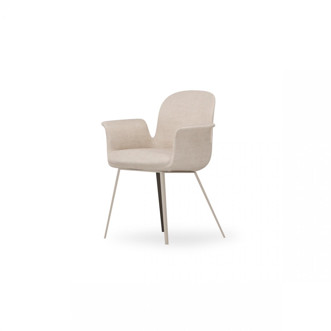 The Soul chair, designed to surround the table, is even more comfortable and welcoming thanks to the presence of the armrests integrated into the seat. Upholstered in leather or fabric, the chair has metal legs in Matt Light Platinum finish. The Soul chair is available in different finishes included in our collection.