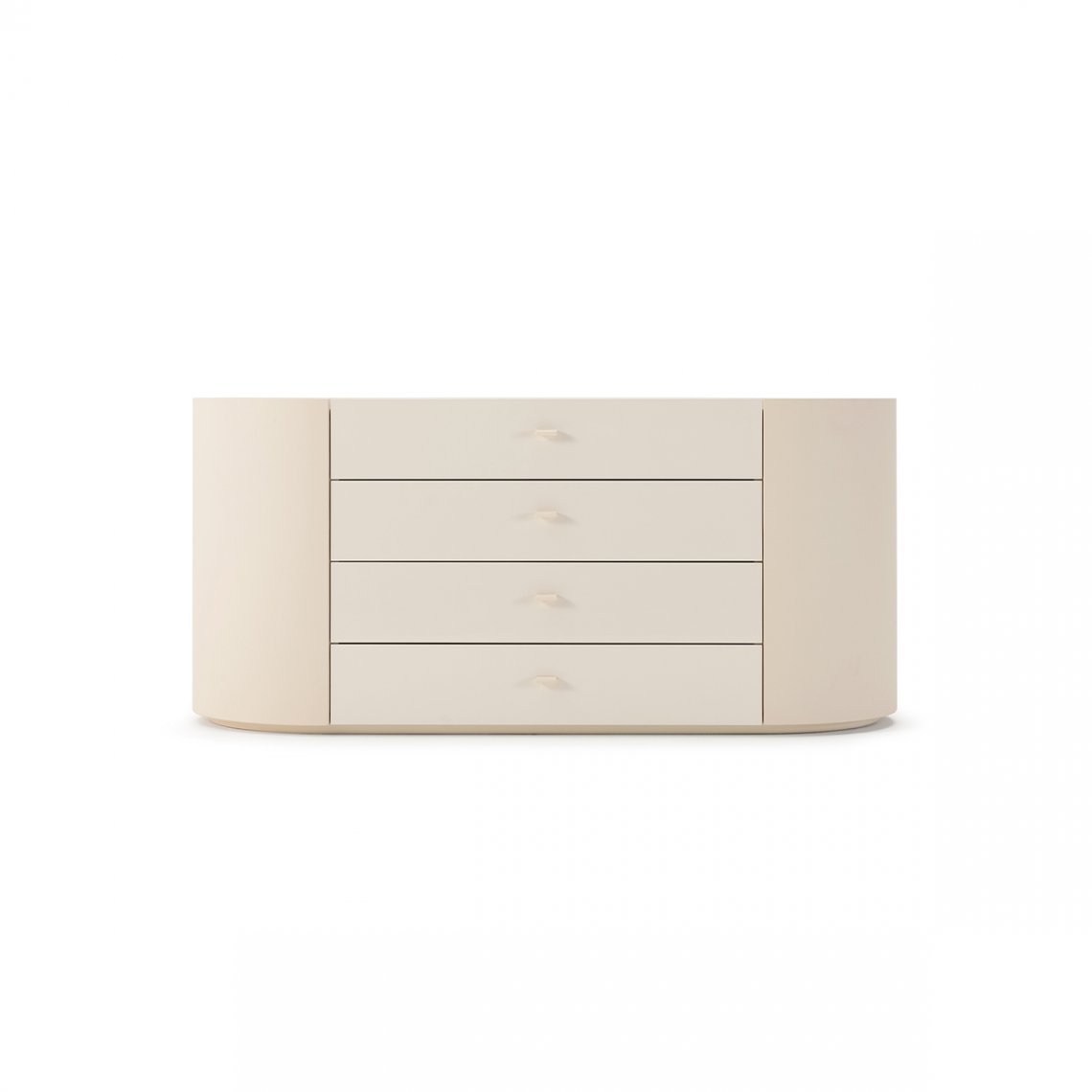 The Roma chest of drawers is an elegant element dedicated to the sleeping area. The sides are covered in leather, the handles are created with elegant straps also in leather. The Roma chest of drawers is available in the version with four drawers or with shelf. The Roma Roma chest of drawers is available in different finishes as per sample card.