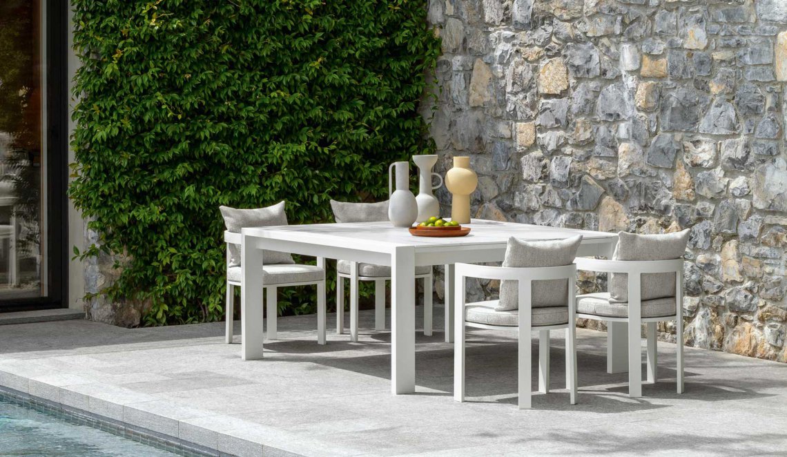 Il piano quadrato del tavolo da pranzo 157×157 Argo Alu può ospitare fino a 8 persone. La struttura in alluminio solida e stabile, sorregge un pianale in gres disponibile in molteplici varianti di colore.