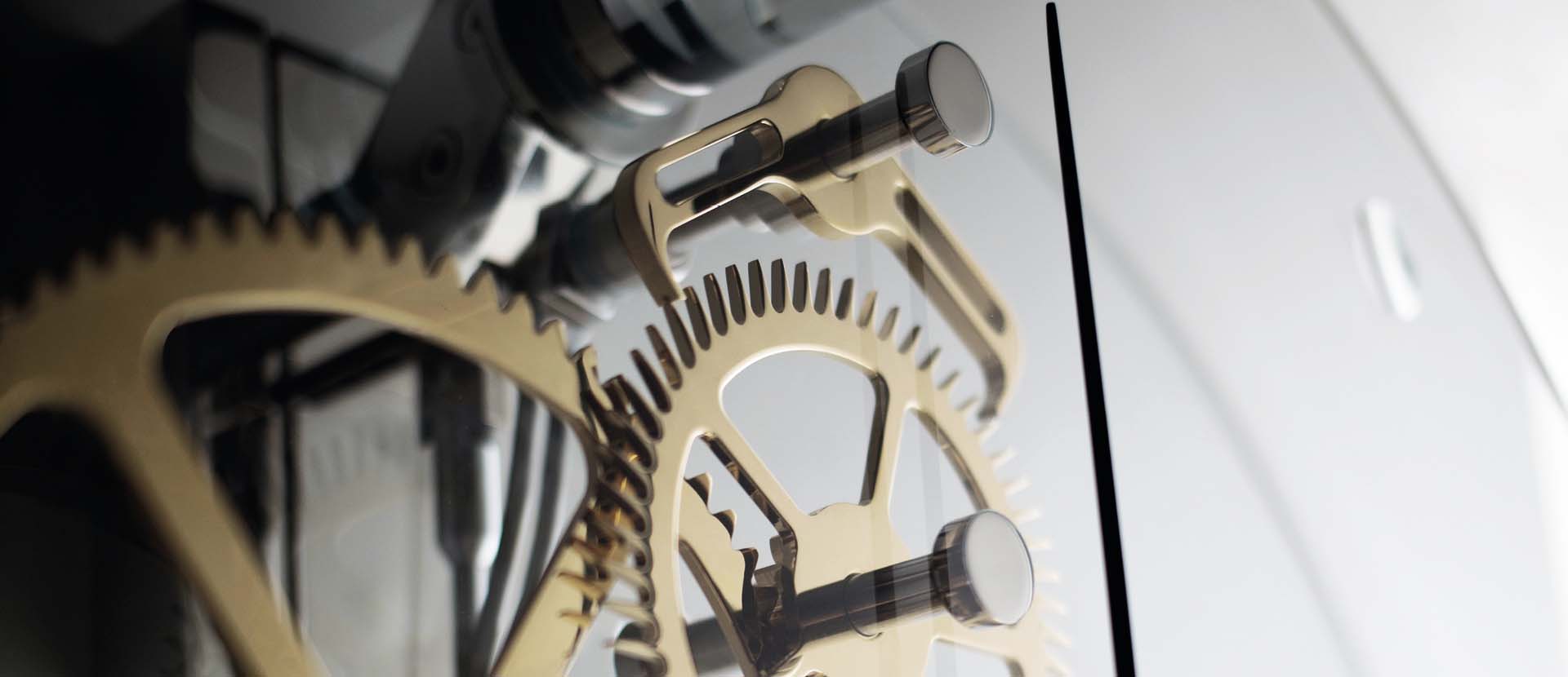 This is the perfect backdrop for the 24K gold-plated mechanism, the clock’s sparkling touch. Literally lively, or Vivace.