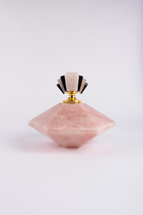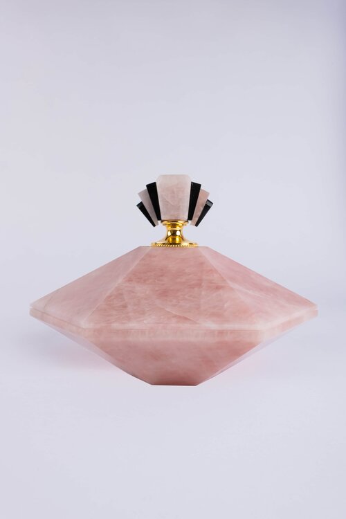 The delicate shade of pink quartz is exalted by the contrast of the black obsidian. A jewel detail that embellishes this hexagonal shaped casket box in a perfectly Art Decò style and yet with a contemporary design. Each piece is hand-cut and therefore unique. Available in three sizes.