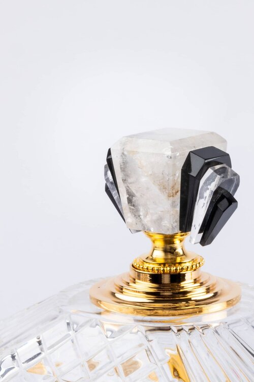 The diamond’s brightness of the french cut crystal exalts the deep color and grain of the stone. A jewel detail that embellishes this casket box in a perfectly Art Decò style and yet with a contemporary design. Each crystal is hand-cut and therefore unique.