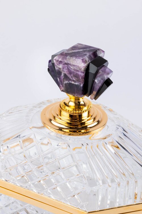 The diamond’s brightness of the french cut crystal exalts the deep color and grain of the stone. A jewel detail that embellishes this casket box in a perfectly Art Decò style and yet with a contemporary design. Each crystal is hand-cut and therefore unique.