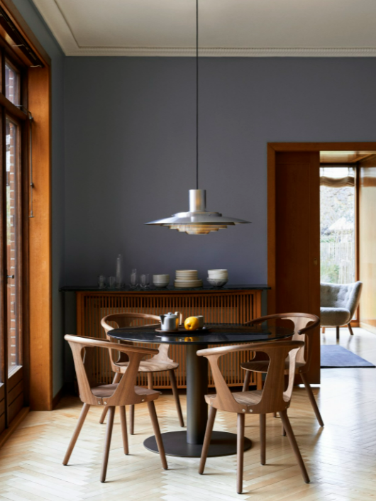 Veneer sheets formpressed together towards a solid wood insert. Milled into shape and lacquered. Natural Rattan weaved around a powder coated stainless steel frame.