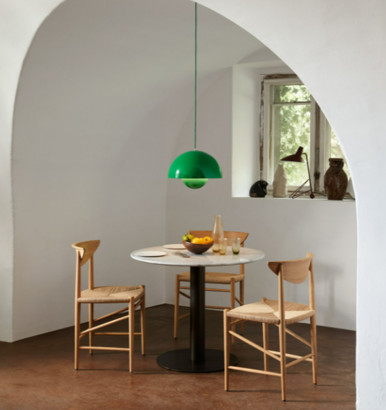 Veneer sheets formpressed together towards a solid wood insert. Milled into shape and lacquered. Natural Rattan weaved around a powder coated stainless steel frame.