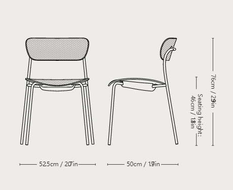 Veneer sheets formpressed together towards a solid wood insert. Milled into shape and lacquered. Natural Rattan weaved around a powder coated stainless steel frame.