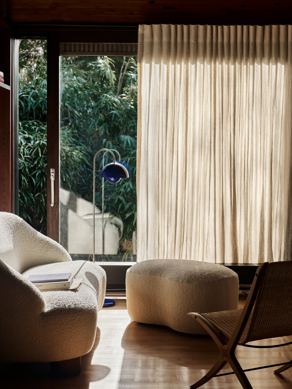 Embodying Louise Liljencrantz’s creative visual language and organic aesthetic in a compact size, the Margas Pouf has been crafted to enhance the experience of lounging. Reflecting the same curved silhouette as the sofa, the pouf is a tactile companion to the rest of the collection.