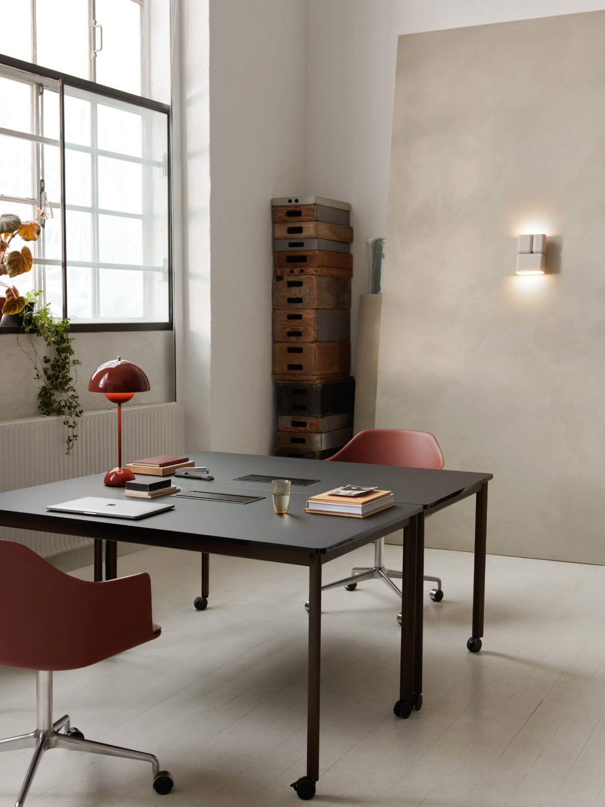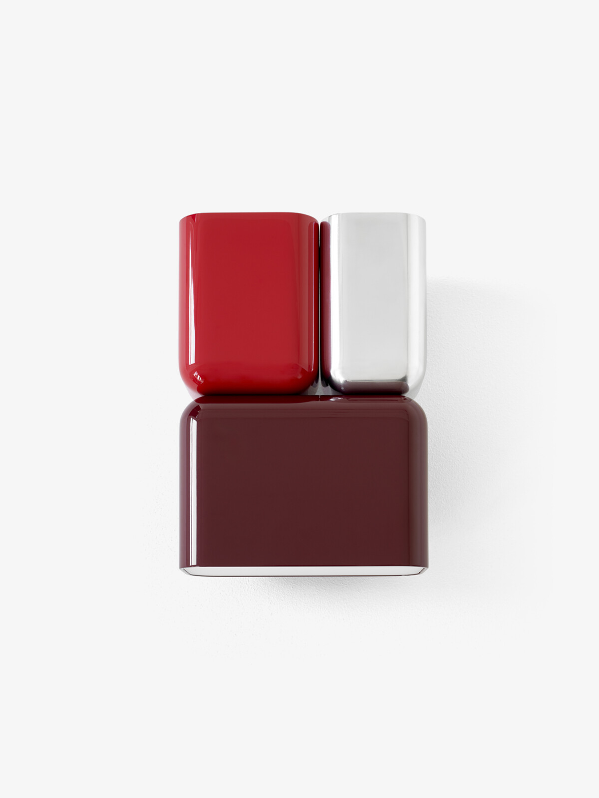 Blending an industrial aesthetic with a playful approach to colour, the Tabata lamp by Luca Nichetto embraces a delicate balance between form and character. With the addition of two new high gloss finishes to the existing collection, Dark Burgundy & Vermillion Red and Deep Blue & Ivory, the bold proportions of the original model are accentuated to create a striking visual contrast.
