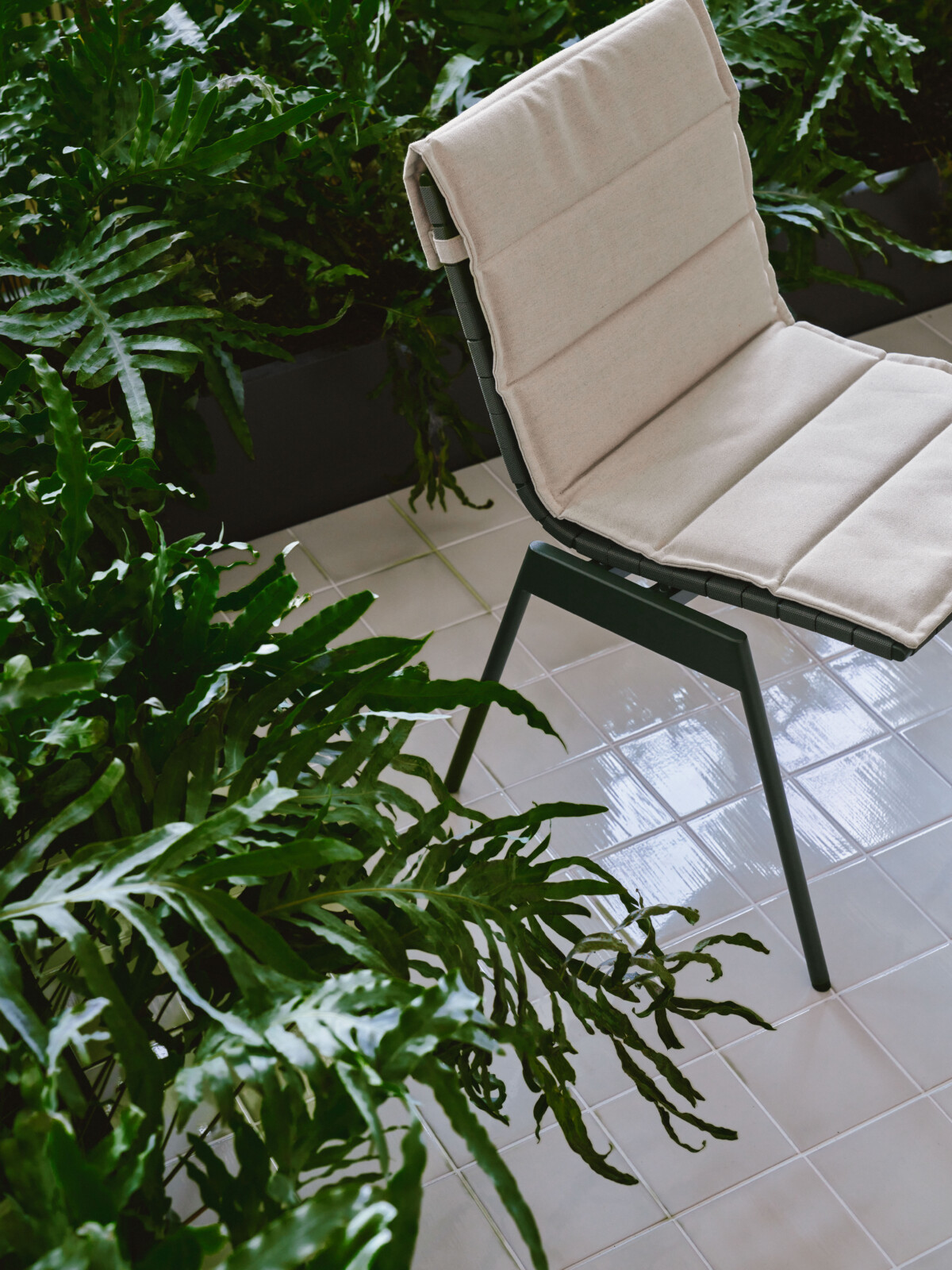 The Thorvald cushions and seat pads offer an additional layer of comfort to the outdoor collection. They can be chosen in Marquetry Bora which is certified with Greenguard Gold, as well as Heritage Papyrus and Heritage Char, which are both made with 50% recycled content and is also certified with Greenguard Gold.