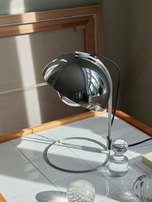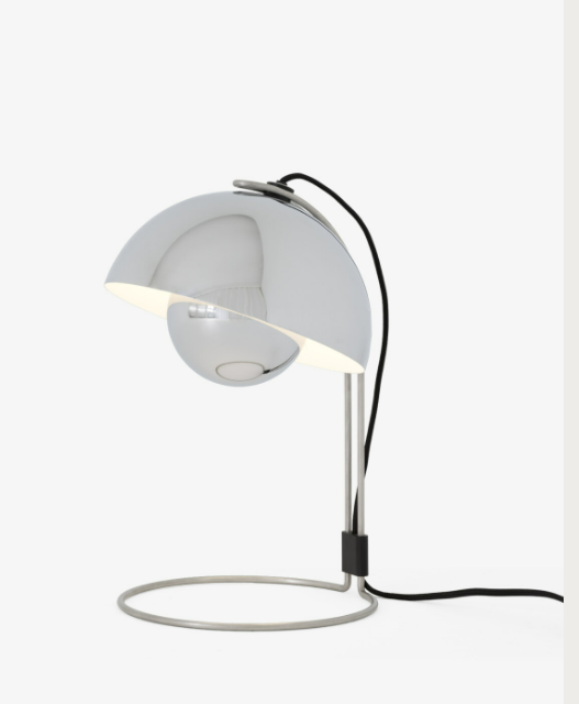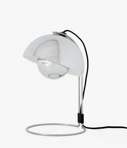 Among the most norm-breaking Danish designs of the 1960s, the iconic form of Verner Panton's Flowerpot is available in a series which now consists of seven different models. The uniquely designed VP4 model adapts the form of the Flowerpot into a stylish table lamp.