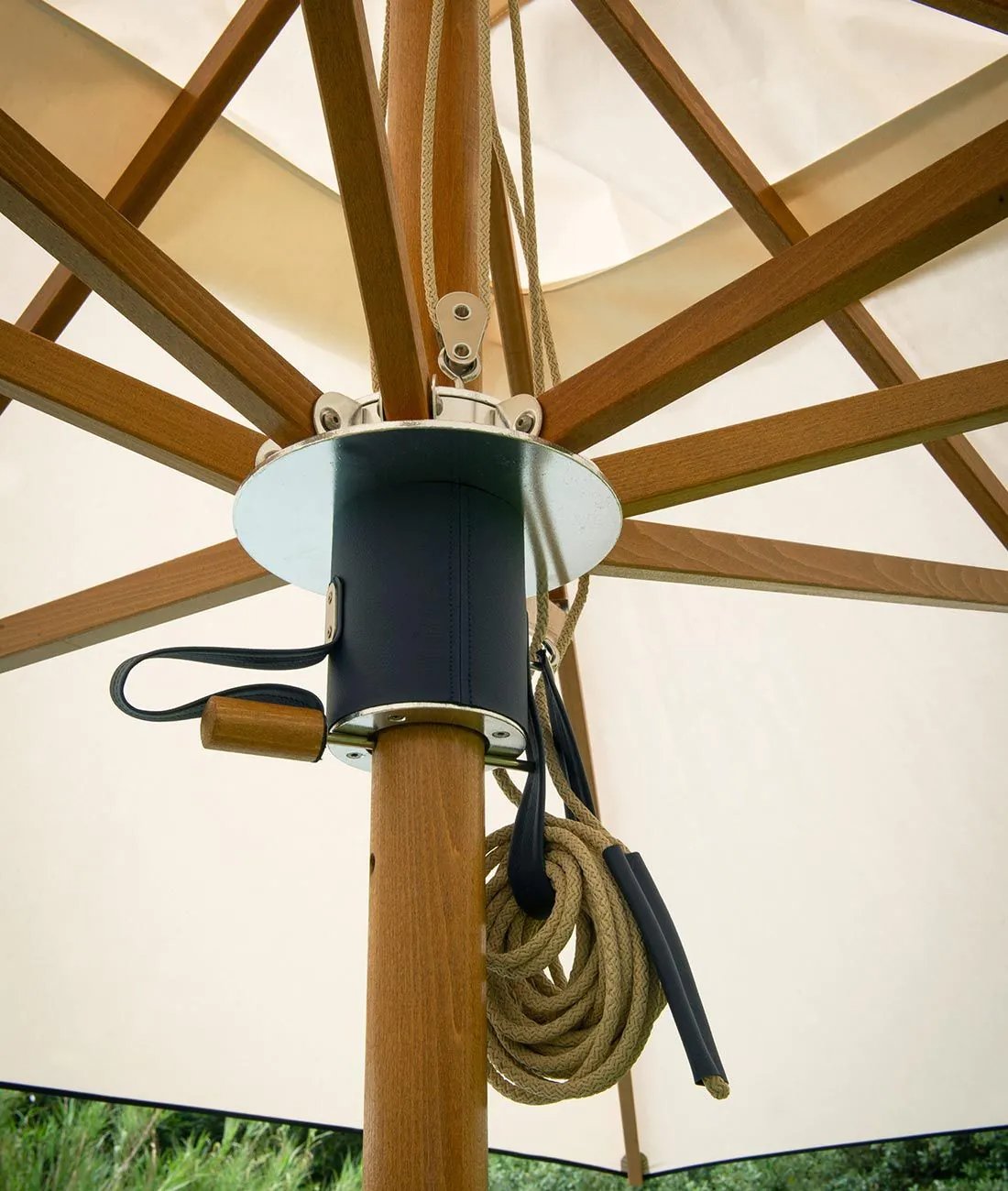 L'ombrellone rettangolare da giardino della collezione Damian è disponibile in eleganti varianti di colore: bianco con pipeline blu e colore corda con pipeline écru. Questo ombrellone da esterno presenta dimensioni generose di 250 cm x 350 cm e un'altezza di 277 cm, ideale per offrire ampio spazio d'ombra nelle giornate soleggiate. La struttura è realizzata artigianalmente in legno di frassino, garantendo resistenza e durabilità nel tempo.