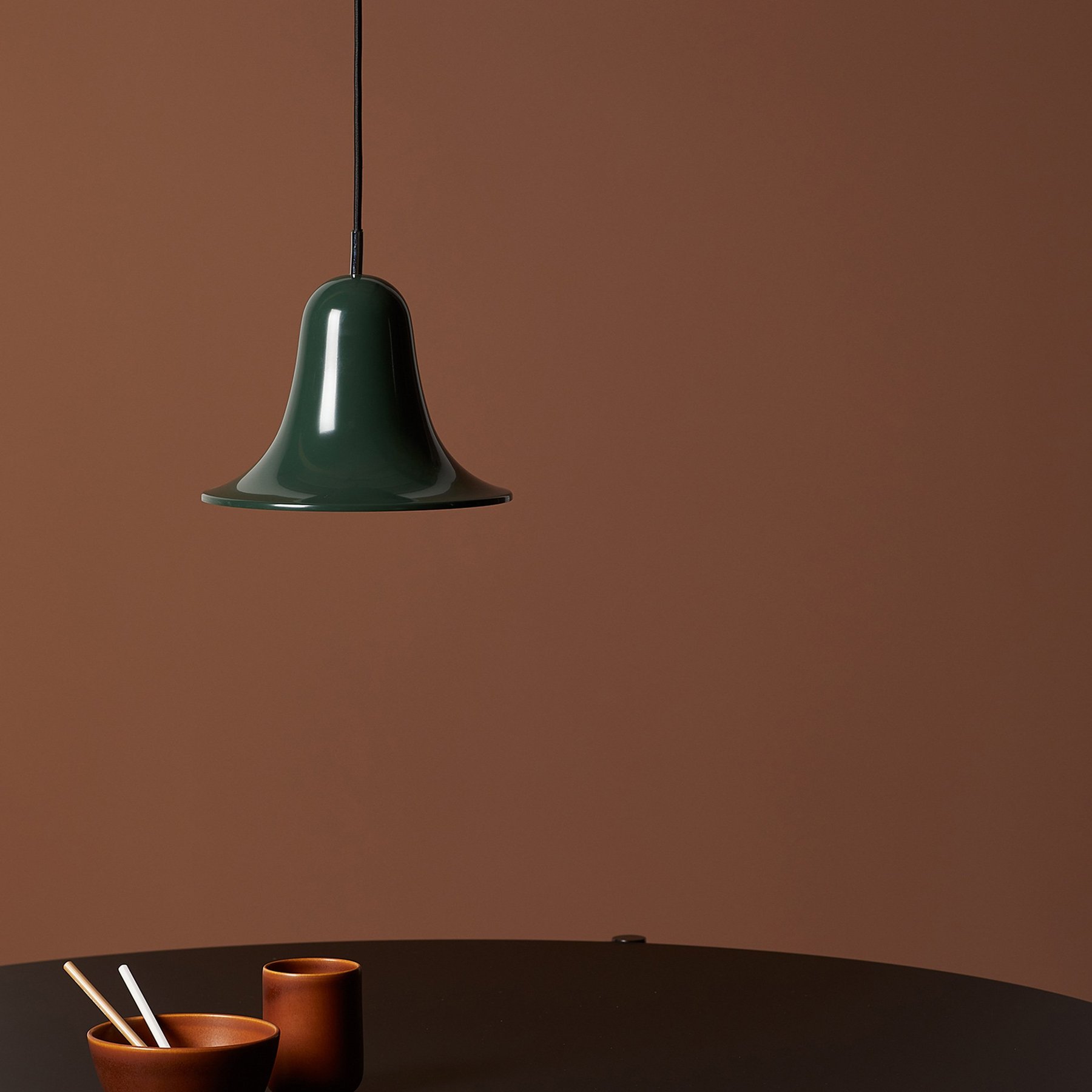 The elegant Pantop line was designed by Verner Panton in 1980, and has for a long time been a staple of the Verpan collection. Pantop is characterized by a bell-like, widely flaring shade which is mounted with the aperture facing down.
