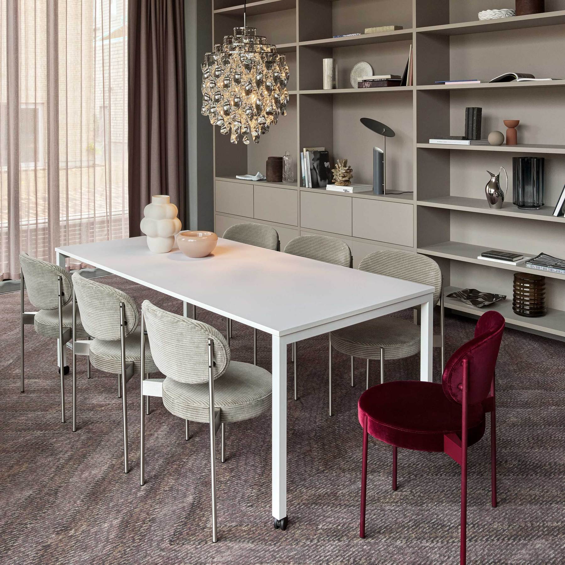 Panton Move is intended as a multifunctional table. It is made from solid materials and designed in a size that makes it practical both as a work desk and dining table. Its mobility makes it perfect not only for a home with limited space, but also as an extra table in a larger home.