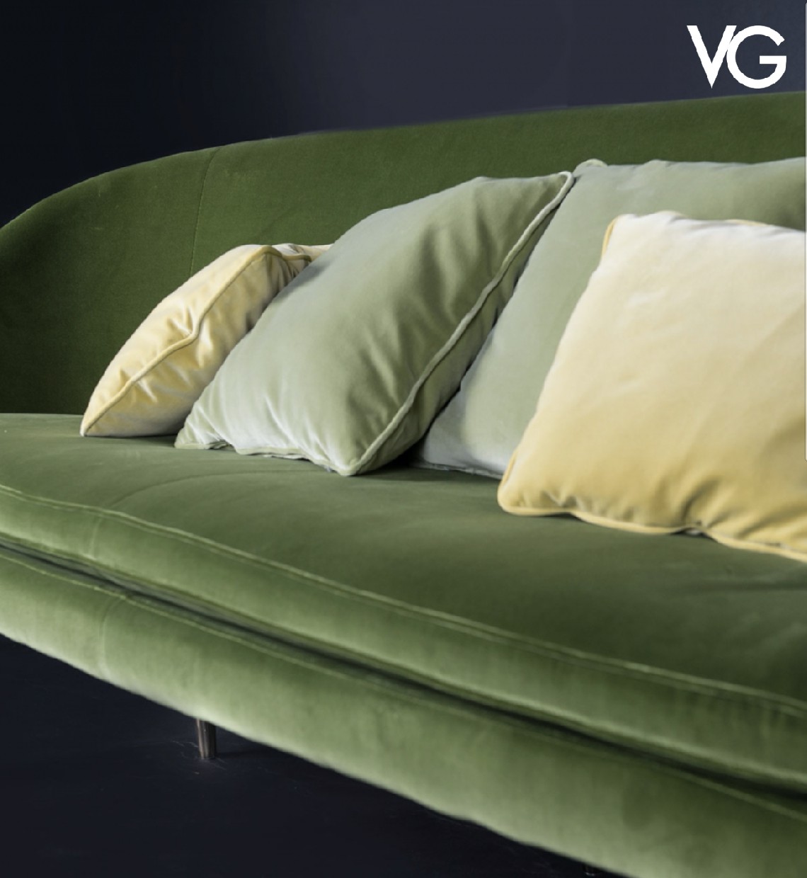 Classic and elegant velvet sofa, characterized by a comfortable upholstered seat and backrest.