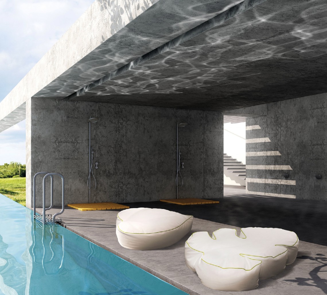 Lightweight outdoor pouf featured by a modern design, ideal for furnishing of relaxation areas, gardens and poolside.