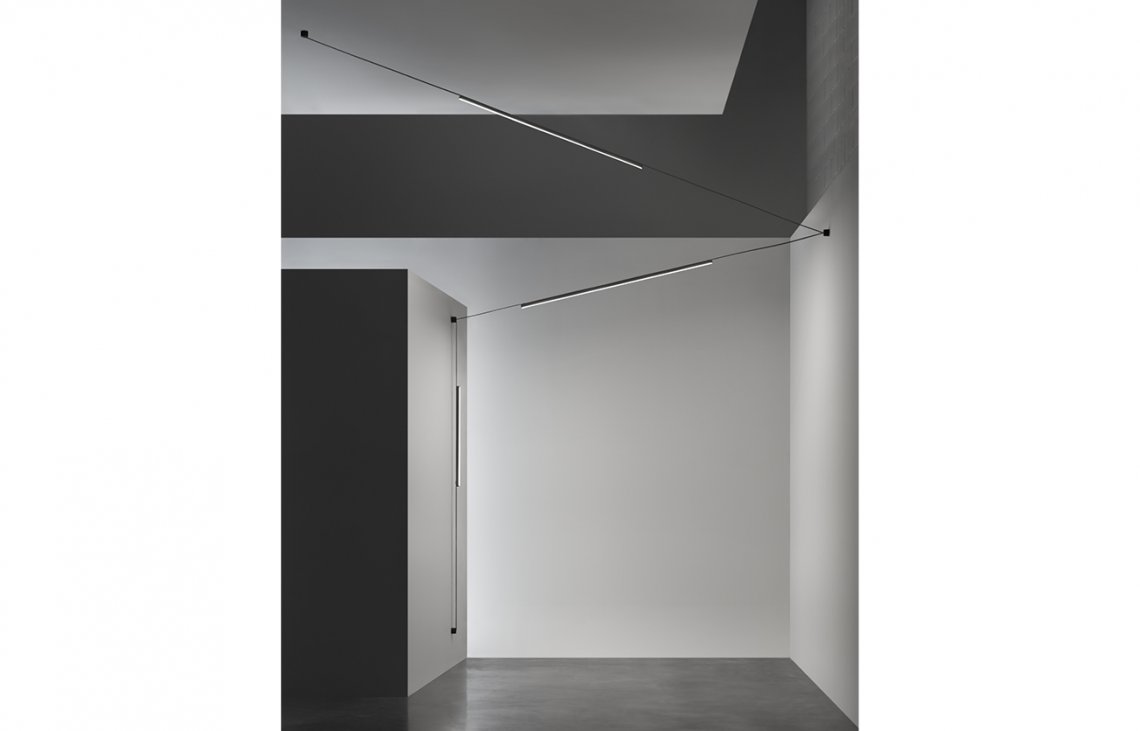 Plusminus is a versatile lighting system that takes the concept of the light rail to a new level. The conductive textile ribbon at its core allows for free placement of the luminaires and the creation of unique light solutions on the spot.