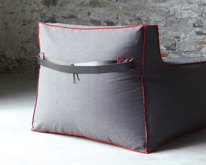 The most important features of 1700 Jelly are its soft and cozy feel which makes it suitable for informal and casual spaces, and also the cordonnet stitching with coloured yarns in contrast with the upholstery fabric's colour. A leather strap placed on the back of the armchair makes 1700 Jelly easier to be moved.