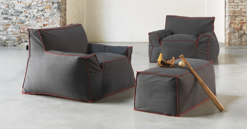 The armchair and ottoman have a structure with separate sections filled with EPS beads and have been designed with the utmost attention to style, fineness, quality and care for details that are typical of Interior Design Made in Italy.