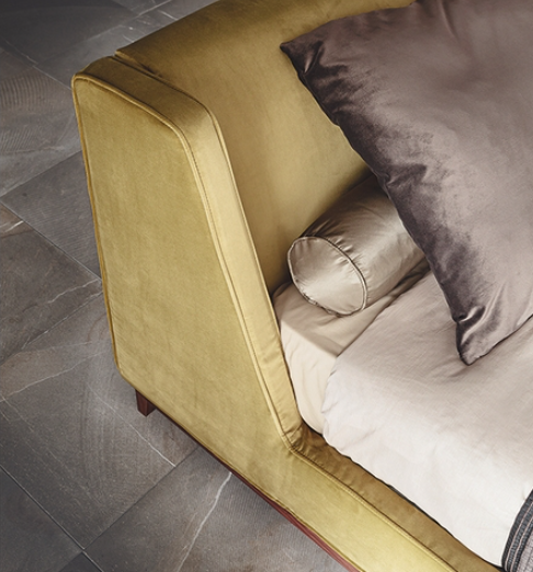 Vibieffe's 5000 Queen is a large double bed available in different sizes and with completely removable cotton, linen, leather or custom covers. The 5000 Queen bed has a distinctly traditional elegance and it is characterized by a recognizable, unique headrest having the same design as the 2300 Queen bed's armrests and also by other simple yet sophisticated details, such as its feet and the lateral exposed wooden panels.