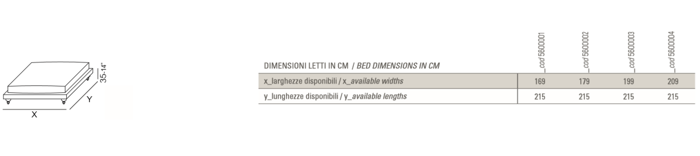 Vibieffe 5600 Sommier is a double bed without headrest, available in different sizes and with completely removable cotton, linen, leather or custom covers. The bed base can be lifted to access the storage space underneath.