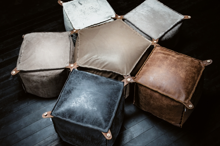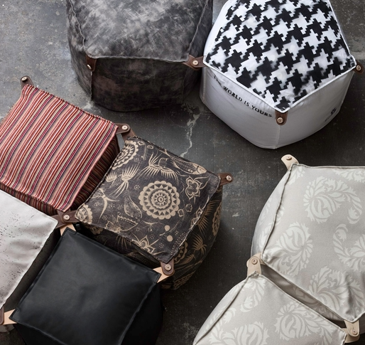 The 456 Four.six ottomans inspire a creative and dinamic use of interior spaces. The ottomans are covered with fabric or leather and have a square, pentagonal or exagonal shape and they can be easily fastened to each other through leather buttonholes and wooden buttons. The possibility to attach and combine ottomans with different colours provides multi-coloured and multi-sized combinations, with numerous covering materials.