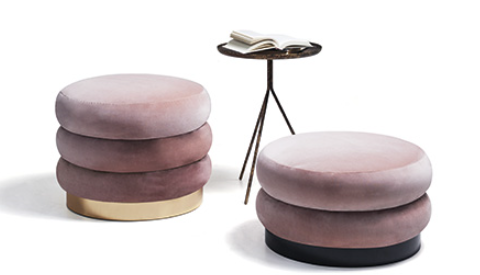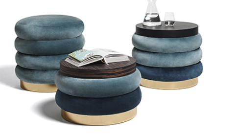 Materials and shapes can be combined giving birth to unique elements. Its structure is made of overlapping rings available in different materials: fabric, lacquered wood, ebony or Canaletto walnut wood, polished brass.