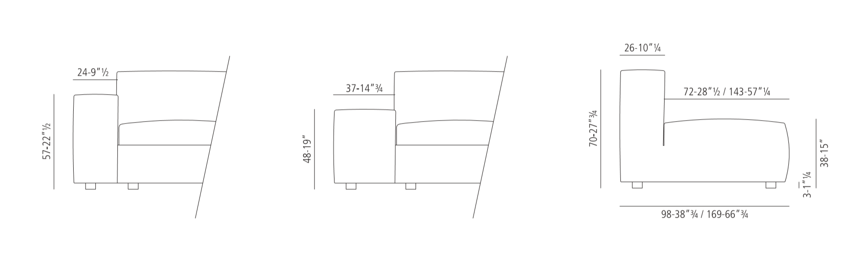 Vibieffe 235 XSmall is a modular custom sofa, available with completely removable covers in cotton, linen, leather or with custom covers.